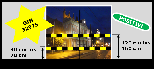Der Kontrast für die Sicherheitsstreifen soll 0,7 (stark kontrastierend) betragen.